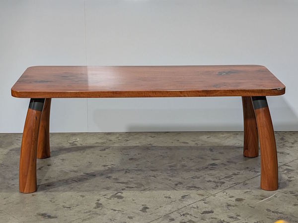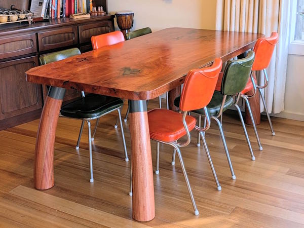 Pictured piece sits 8 people if using the ends and is produced from urban salvaged timber that we have milled and dried in house, with a single piece, highly figured Sydney Bluegum top and Brittle Gum legs. This piece measures 190cm long x 90cm wide x 75cm high.